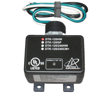 DITEK’s “HW” series of surge protectors are engineered and manufactured to the exacting standards of the life safety industry. More fire alarm panels worldwide are protected by the 120 HW than any other protector. HW products are available in 120V, 240V, or 120/240V single phase configurations. Parallel connected AC surge protector.