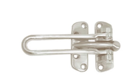 Polished chrome finish door flip guard for wood or metal doors.