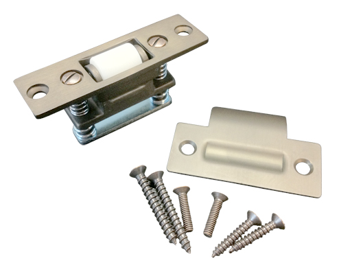 Roller latch with 1-3/4" x 2-3/4" strike, available in several finishes.