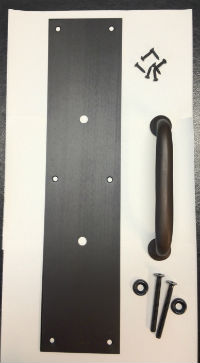 Rockwood 132 Pull Handle with Rockwood 70 Plate , Material: Bronze, Finish: Satin Oxidized Oil Rubbed, Pull CTC: 5-1/2", Plate Size: 3-1/2" x 15"