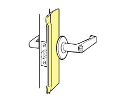 3" x 11" duro coated latch guard for outswinging doors. Completely covers the strike plate.