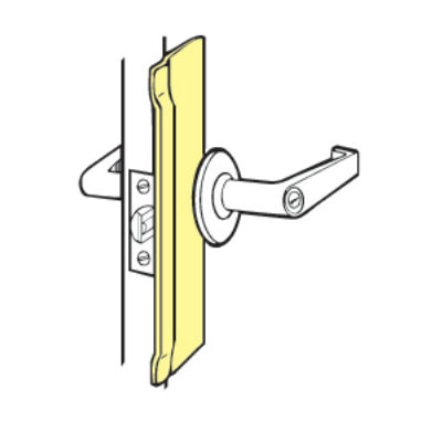 3-1/4" x 10" brass plated latch guard for outswinging doors. For key-in-lever locks with up to 3-3/4" escutcheon.