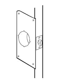 9" x 4" x 2-3/8" satin stainless steel scar plate for door damaged by prying. Fits one side of door with curved lip. Fits under key-in-knob.