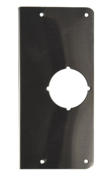 3-1/2" satin bronze scar plate used to convert 2-3/8" to 2-3/4" backset. Fits under rose of key-in-knob or deadbolt locks.