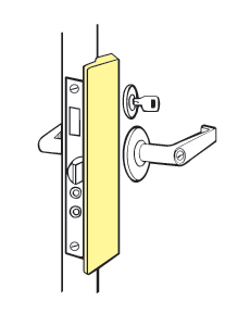 3-1/2" Duranodic scar plate used to convert 2-3/8" to 2-3/4" backset. Fits under rose of key-in-knob or deadbolt locks.