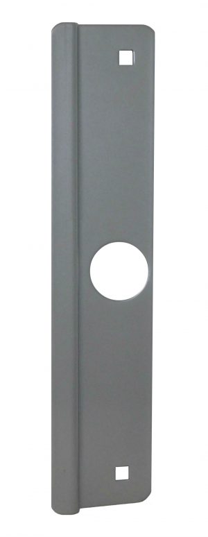 2-5/8" x 12" duro coated latch guard for out-opening doors. 1/4" offset x 1-7/16" hole x 1-1/8" backset.
