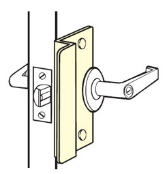 Latch guard, 1-3/4" x 6" for in or out-opening doors with deadbolts or key-in-knob locks.