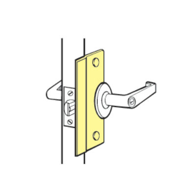 Brass lach guard, 2-1/2" x 6" for out-opening doors, accepts up to 3-1/2" rose, 7/16' offset.