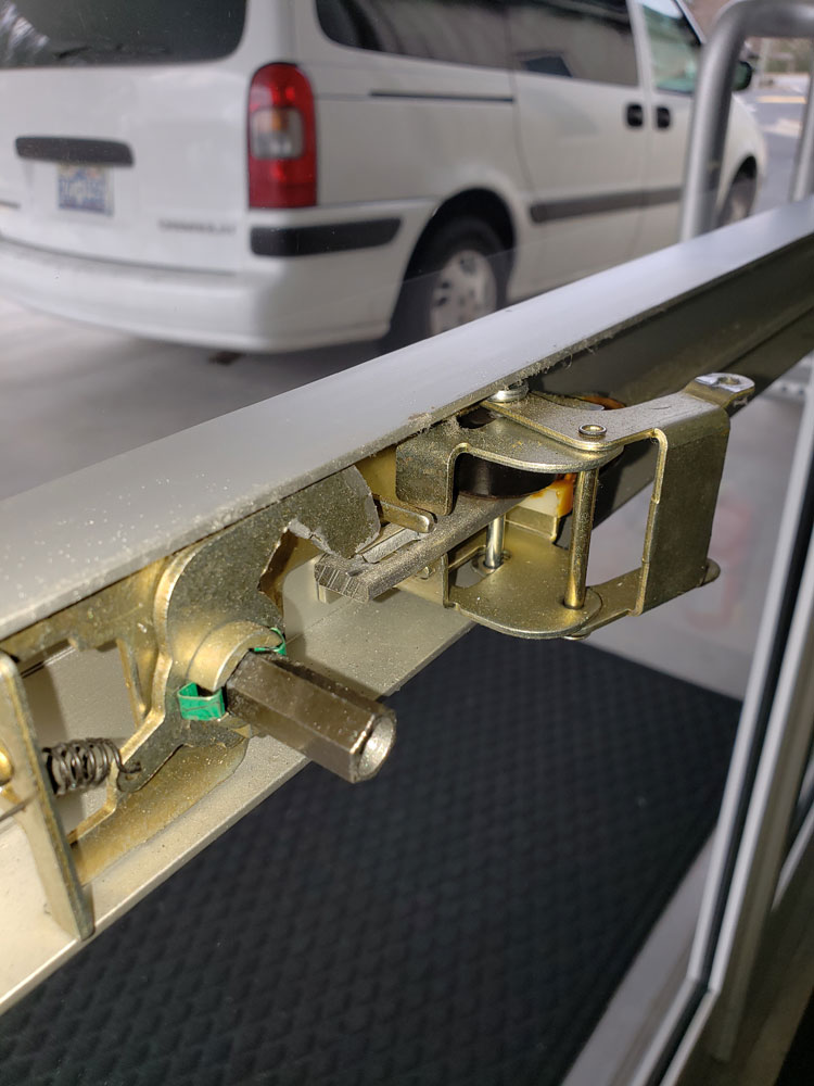 A: The replacement of the Dor-O-Matic SHAFT.101 Hex Dogging Shaft from the Dor-O-Matic KIT.1197 Dogging Kit for 2390, 1790, 1690 Series Exit Devices is a very simple and straightforward procedure and I have detailed the common steps for replacement and explanation in the video link below: