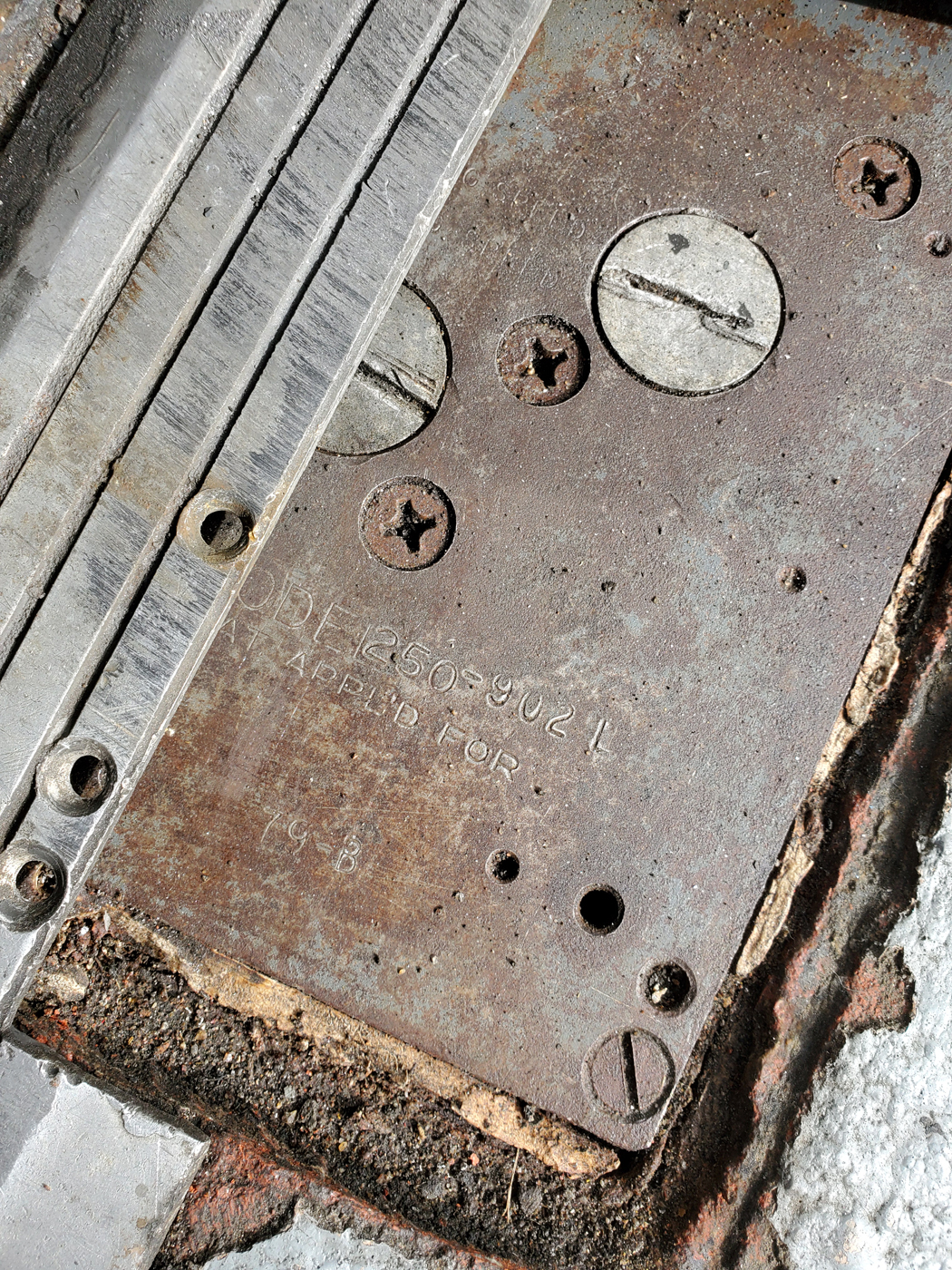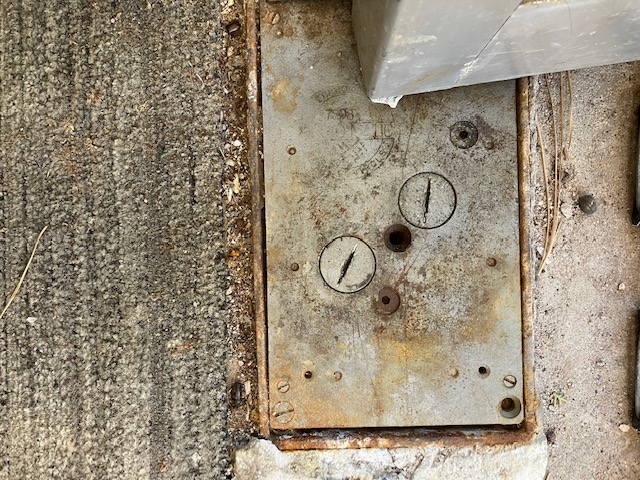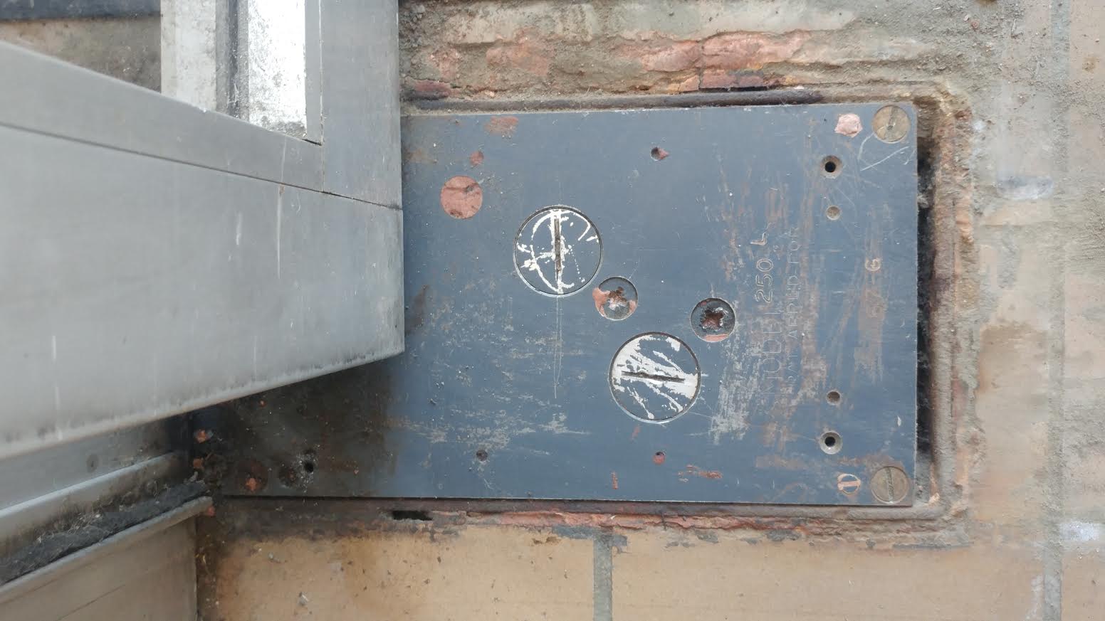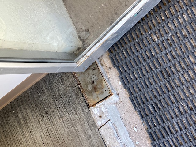 I would start by carefully removing the slotted screw cover that would be closest to the door as seen in your photographs here: