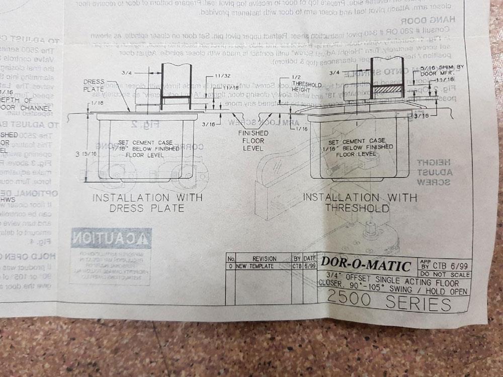 Rebuilt Floor Door Closer for Dor-O-Matic Model 2500 Hydra-Cushion Series - 90 Degree Hold Open