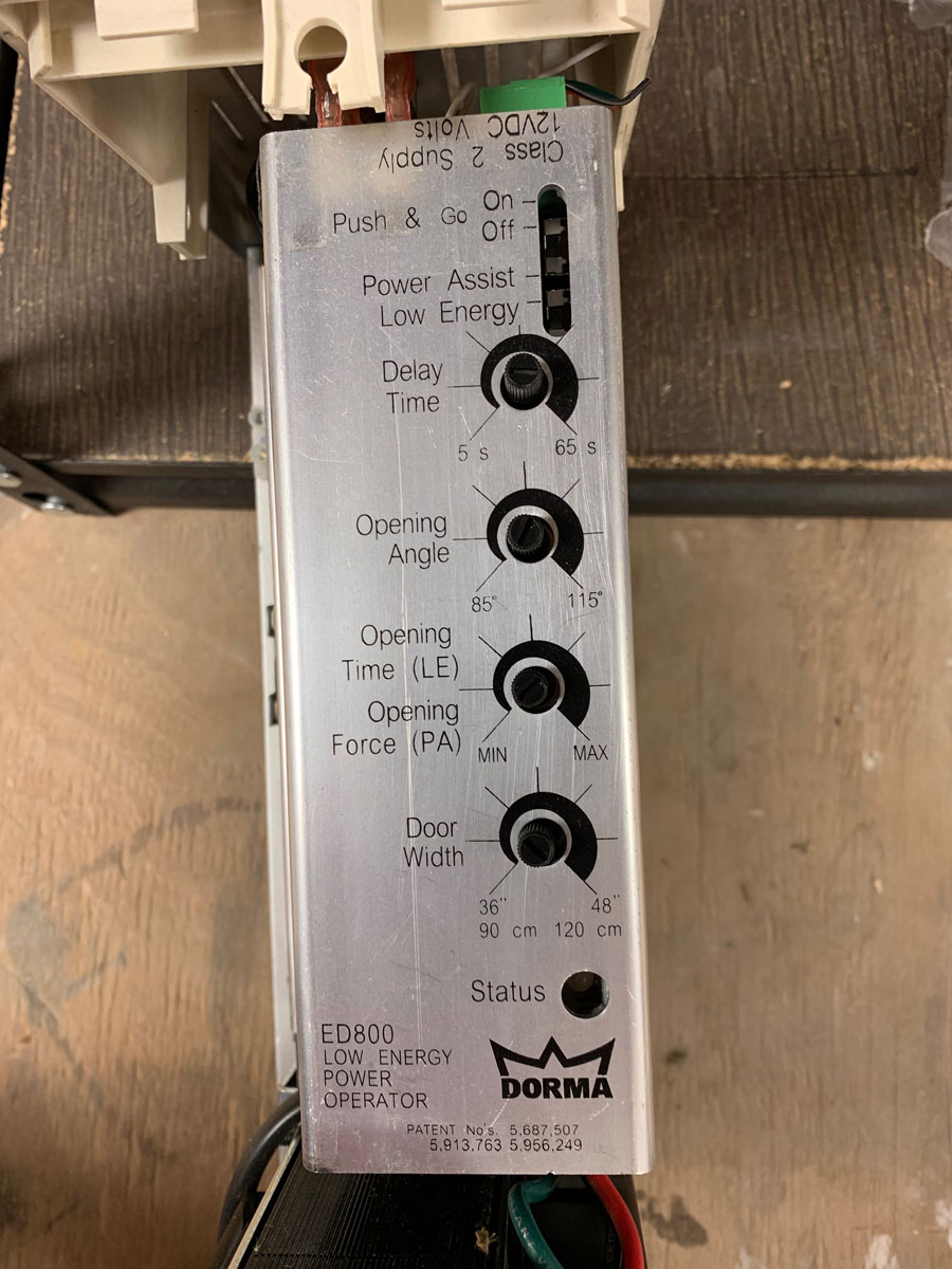 Dorma satin stainless steel tamper-resistant wall switch with blue engraving for ED800 automatic door openers .