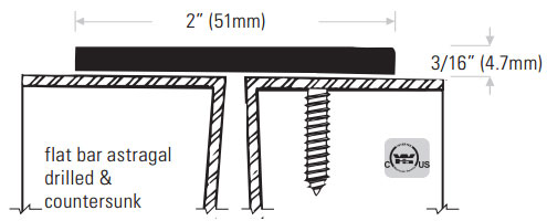 3/16" x 2" x 84" drilled & countersunk flat bar astragal