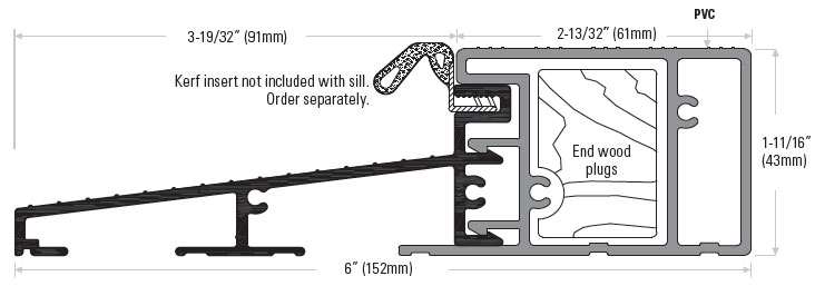 DS2558AVT150 150" Sill Outswing for 4-9/16” Jamb with PVC Interior Threshold and 1 Wood Insert - Tan - Extruded Aluminum Mill