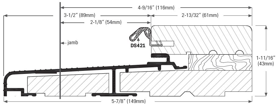 DS2578AOAK150 150" Sill Outswing for 4-9/16” Jamb with Oak Threshold - Extruded Aluminum Mill
