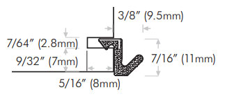 Kerf-In Silicone Weatherstrip, Length: 12", Dark Brown, Minimum space between the door face and the stop is 1/16"; maximum space is 1/4"Exposed Width: 9/32", Fire Rated