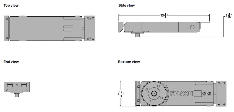 Cast iron body that fits inside a standard aluminum frame header. Its use with aluminum frames and doors makes for maintenance-free performance.