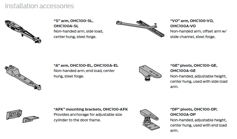 OHC100 Series Overhead-Concealed Door Closers Parts&Accesories - provides anchorage for adjustable size cylinder to the door frame.