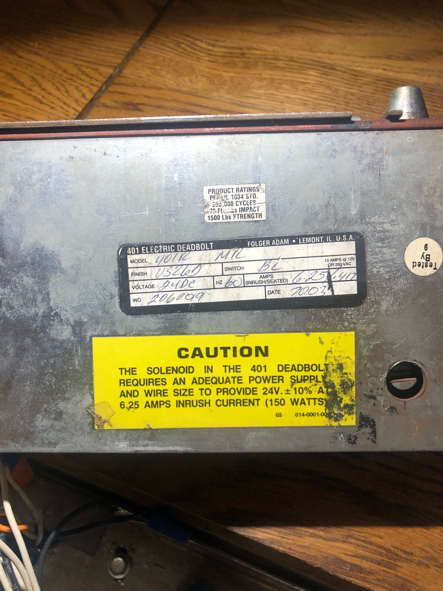 Rixson 401DR Model Electric Deadbolt - Fail Secure