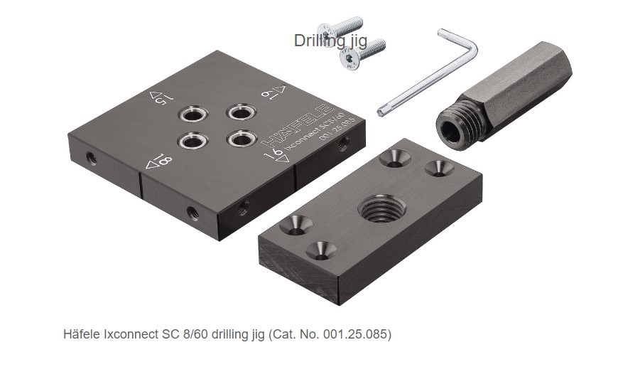 Hafele 001.25.085 Drilling Jig, For Häfele Ixconnect SC 8/60 Spreading Connector, For Panel Thickness of 15, 16, 18 and 19 mm, Black