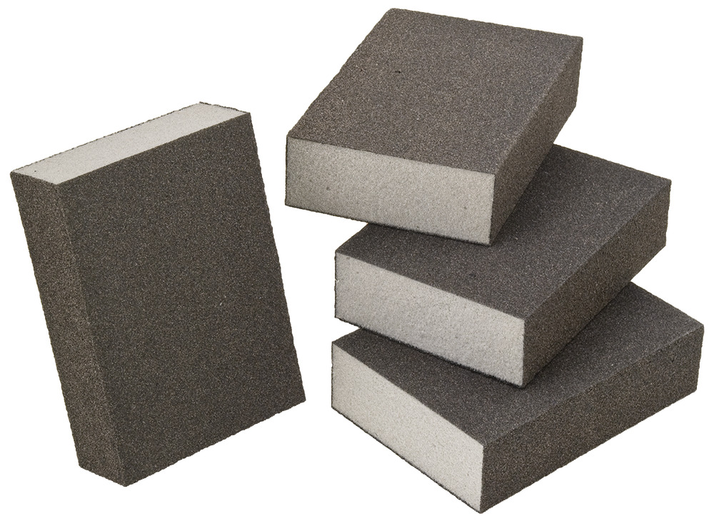 Hafele 005.32.144 Foam Sanding Sponge, Four-Sided, 2-5/8" x 3-3/4" x 1" (W x H x D), 60 Grit, Aluminum Oxide