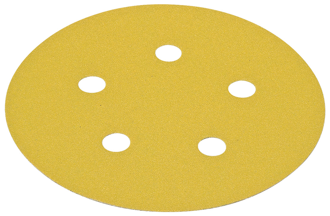 Hafele 005.33.191 Abrasive Paper Disc, Hook-N-Loop, 5" Diameter, 5 Holes, 100 Grit, Aluminum Oxide, Box of 100 Pieces