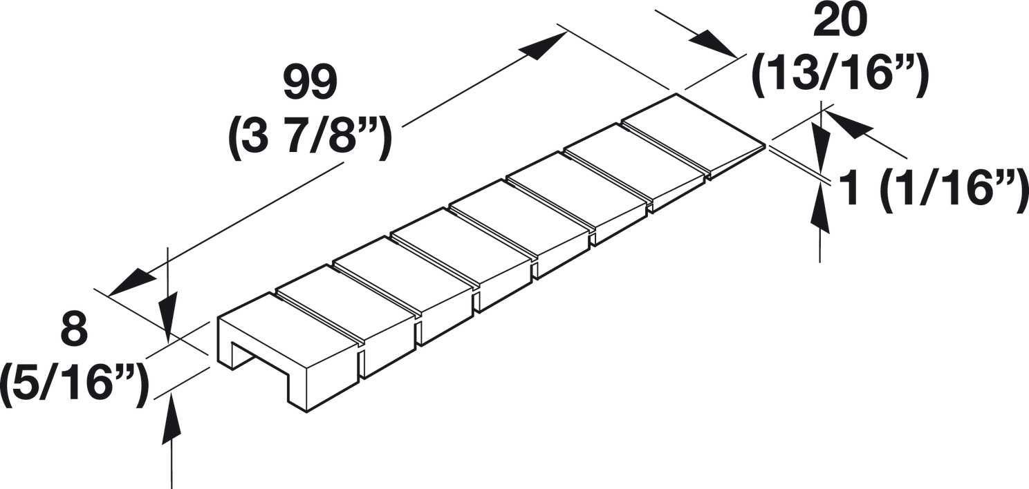 Hafele 006.90.900 Furniture Wedge, With break away sections, 99 x 20 mm (3-7/8" x 3/4"), 8 mm (5/16") Thickness, Plastic, Brown