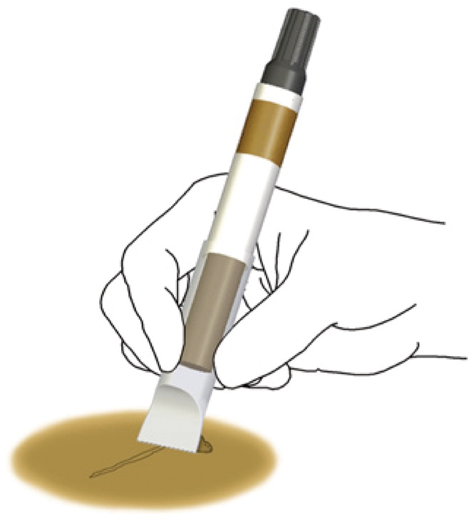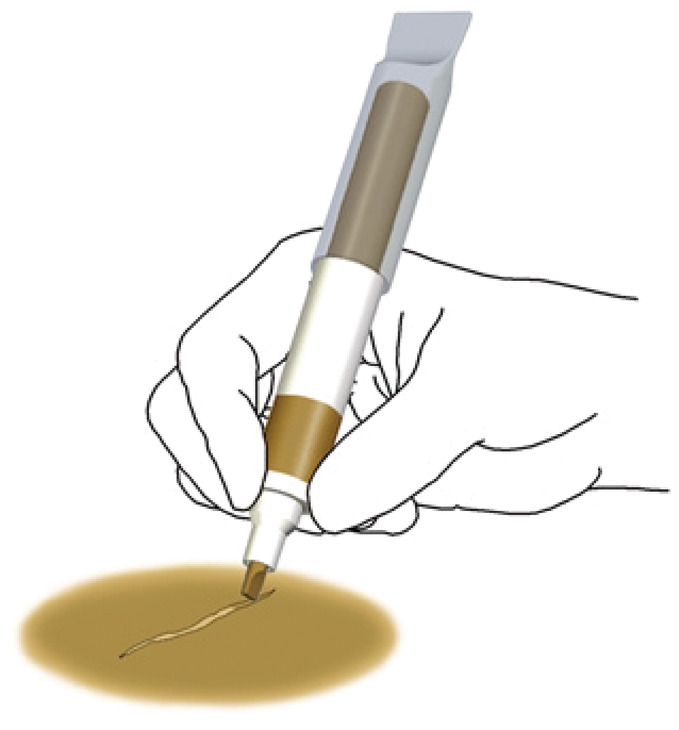 Industrial quality filler and marker. Patent pending leveler cap used to remove and level the filler