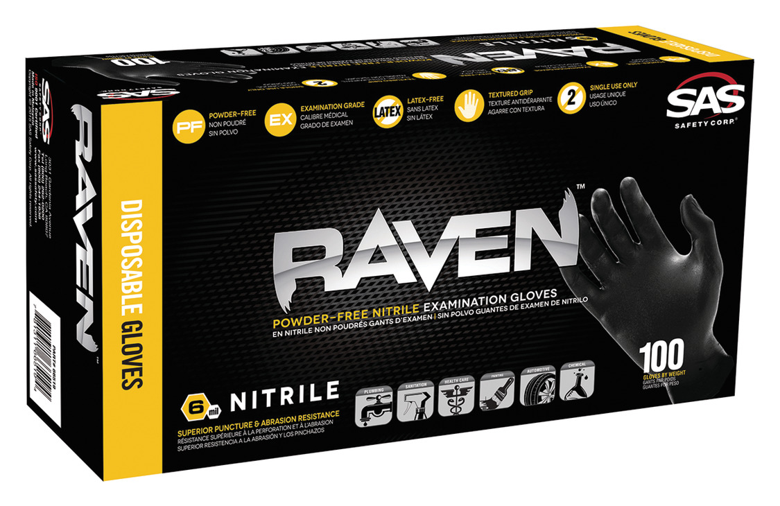 Hafele 007.64.048 Raven Gloves, 6 mm Thickness, Powder-Free, XXL Size, Nitrile, Black, Box of 100 Pieces