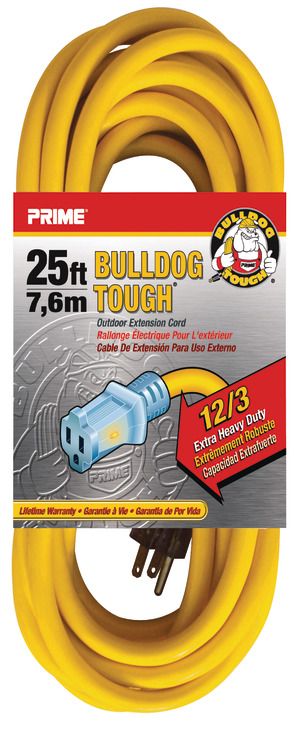 Hafele 008.74.203 Extension Cord, Heavy Duty with Primelight® Indicator Light, 12/3 Gauge, 300" (7.6 m) Length, Yellow
