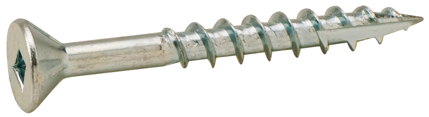 Hafele 010.22.971 Zip-R Screw, Flat Countersunk Head, #2 Square Drive, with Nibs, #8 x 2" Screw Ø x Length, Partial Thread, Steel, Zinc