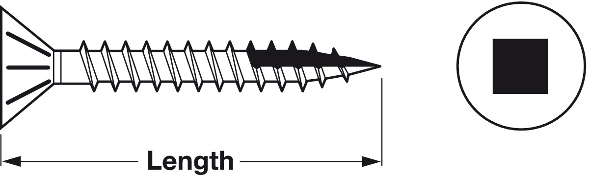Hafele 010.22.987 Zip-R Screw, Flat Countersunk Head, #2 Square Drive, with Nibs, #6 x 3/4", Full Thread, Steel, Zinc Plated, Box of 8000