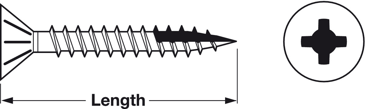 Hafele 010.23.154 Zip-R Screw, Flat Countersunk Head, #2 Phillips Drive, #8 x 2-1/4", Partial, Steel, Black Oxide, Box of 3000