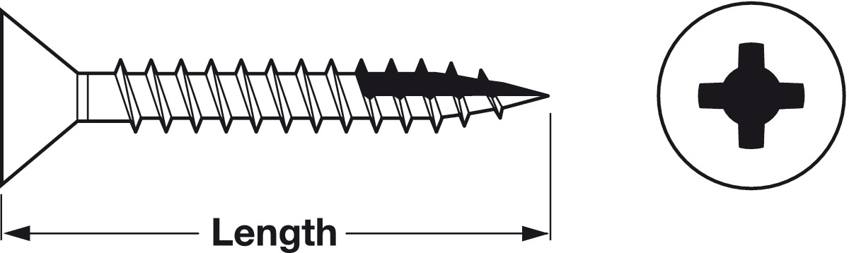 Hafele 010.23.174 Zip-R Screw, Flat Countersunk Head, #2 Phillips Drive, #8 x 2-1/2", Partial, Steel, Black Oxide, Box of 2500