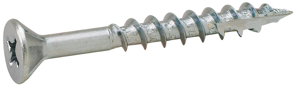 Hafele 010.23.975 Zip-R Screw, Flat Countersunk Head, #2 Phillips Drive, with Nibs, #8 x 2-3/4", Partial, Steel, Zinc Plated, Box of 2000