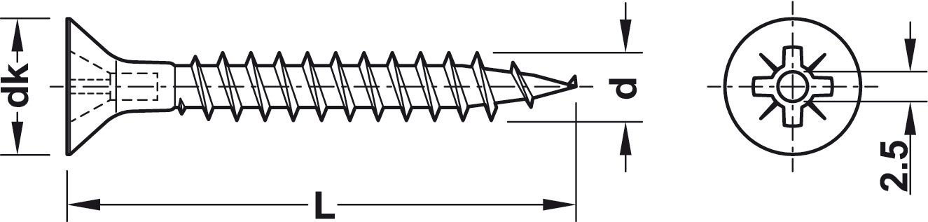 Hafele 015.01.962 Flat Countersunk Head Screw, Hospa, #9 x 1-1/2" (40 mm) Length, 2.5 mm Central Hole, PZ, Steel, Galvanized, Box of 500 Pieces