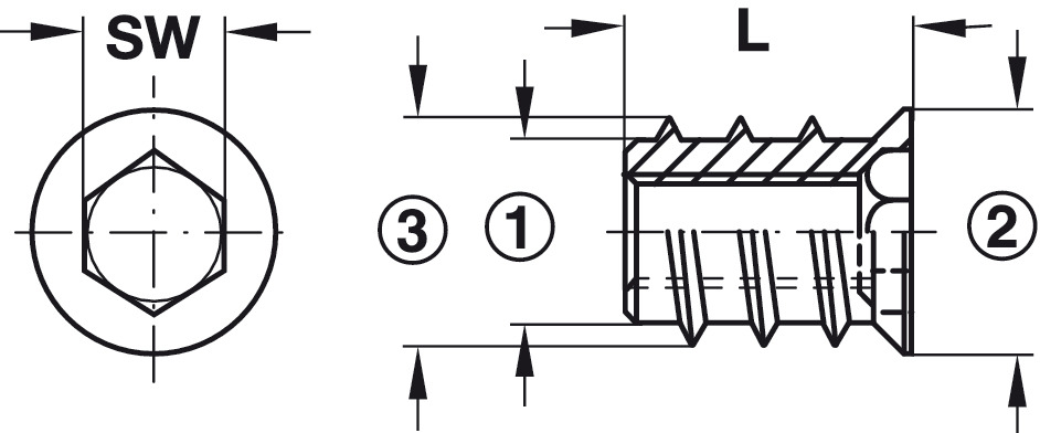 Hafele 030.10.564 Socket, With Hex Head, M6 Thread, 15 mm (9/16") Length L, 8 mm (5/16") Hole Diameter, Steel, Yellow Chromatized