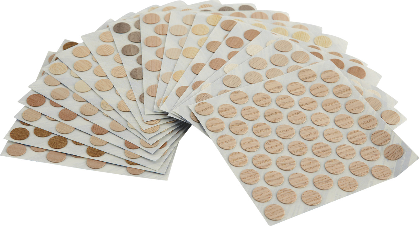 Hafele 045.24.990 Cover Cap, Capfix, Self-Adhesive, 9/16" (14 mm) Diameter, Wood Sampler Box, 1 Sheet (52 Caps) of Each Wood, Real Wood, Unfinished, Set