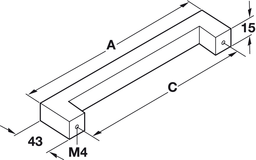 Hafele 100.51.025 Handle, Lago Di Como Collection, 8-13/16" Hole Spacing, 9-7/16" Length, 1-11/16" Depth, 9/16" Height, Stainless Steel, Matt