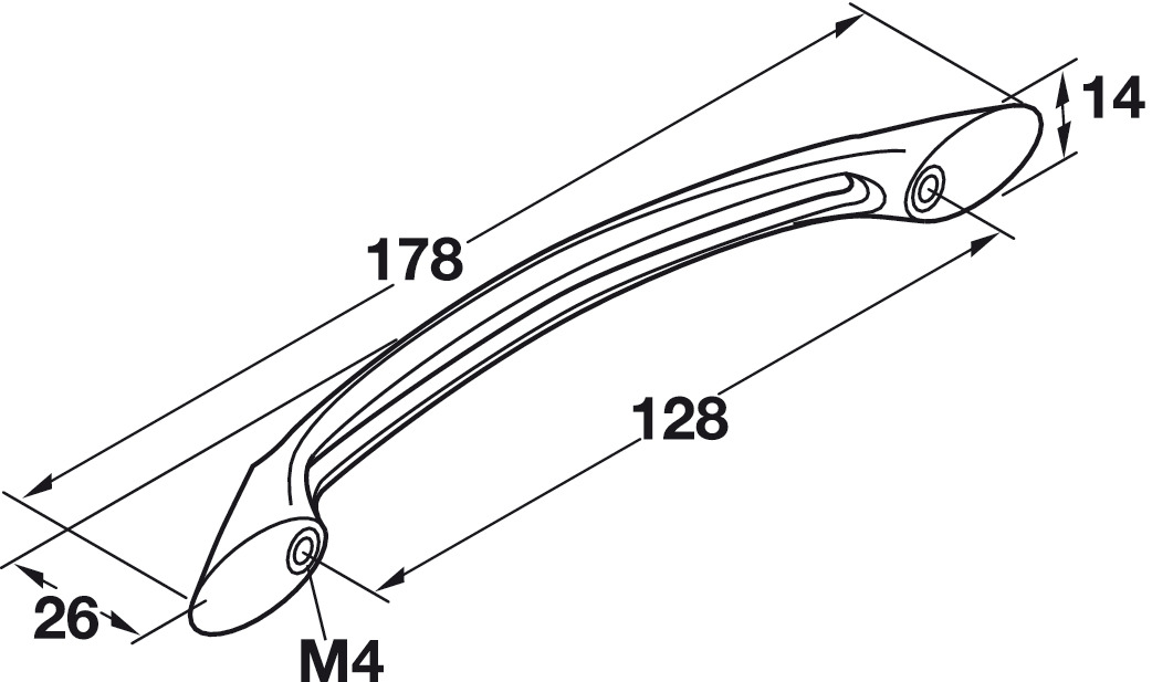 Hafele 104.09.600 Handle, 5" Hole Spacing, 7" Length, 1" Depth, 9/16" Height, Zinc, Matt Nickel