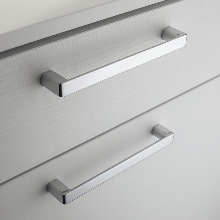 Hafele 106.69.607 Handle, Studio Collection, 7-9/16" Centre To Centre, 8-3/8" Length, 1-1/4" Depth, 11/16" Height, Zinc, Brushed Nickel