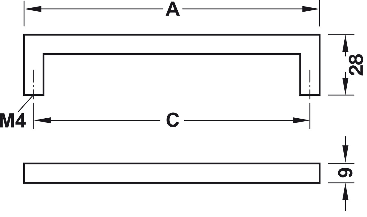 Hafele 155.00.040 Handle, Vogue Collection, M4 Thread, 3 3/4" Center to Center, 4 1/8" Length, 1 1/8" Height, Zinc Alloy, Polished Chrome