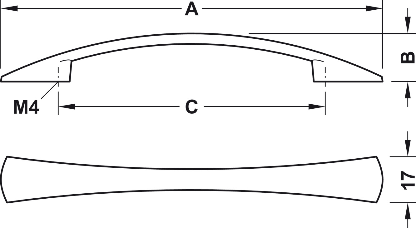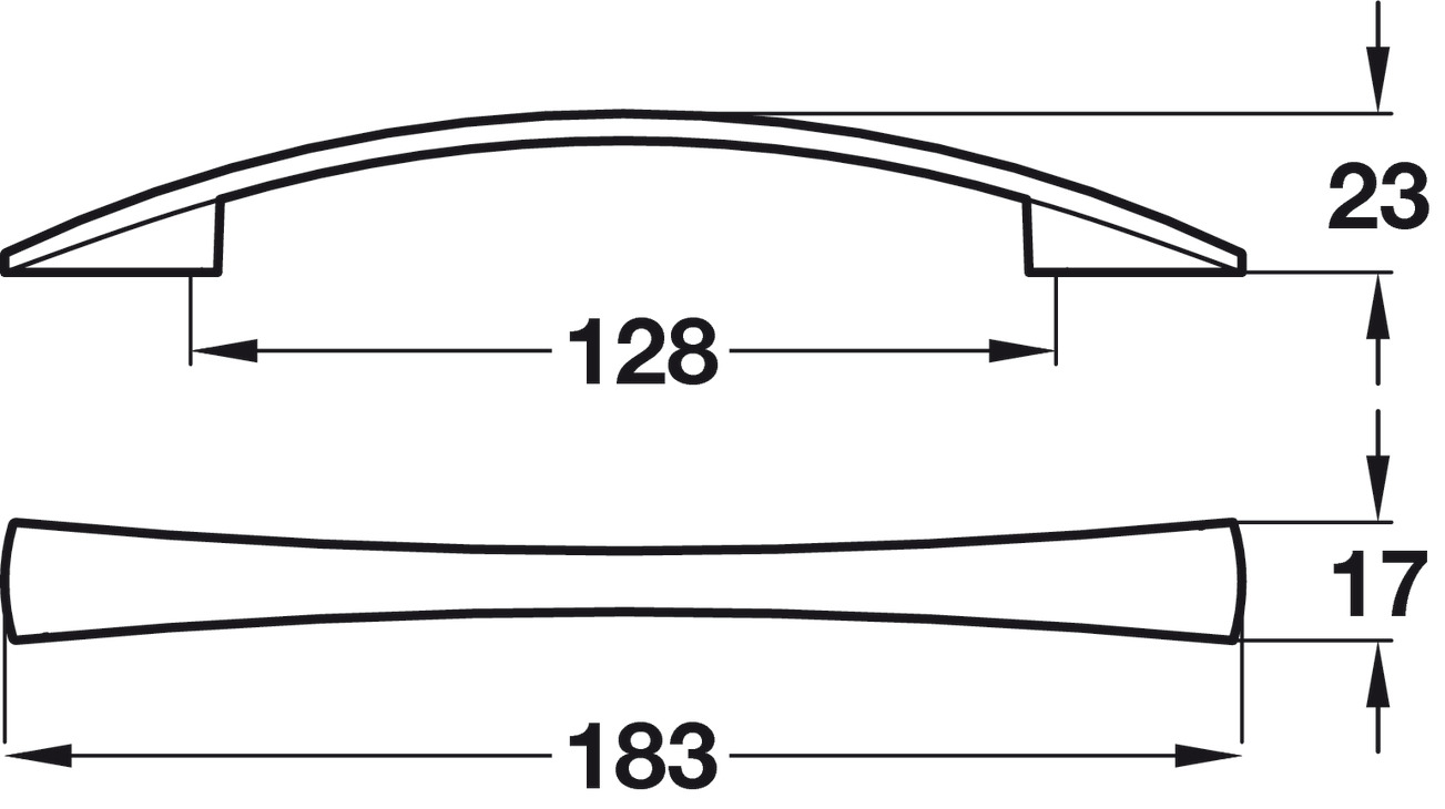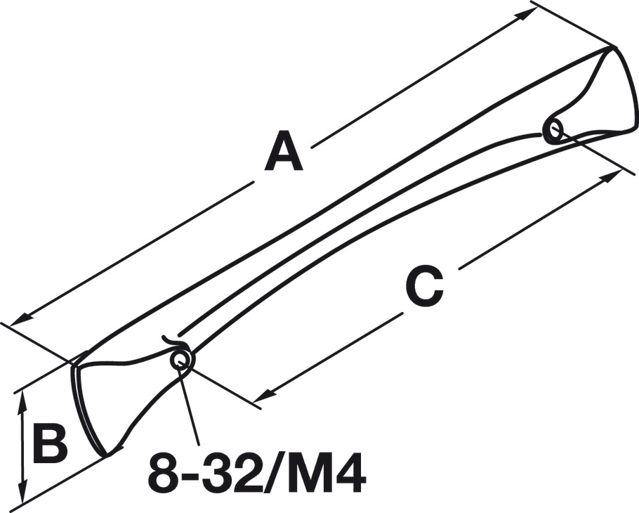 Hafele 155.00.441 Handle, Showcase Collection, M4 Thread, 5" Center to Center, 7 3/16" Length, 15/16" Height, Zinc Alloy, Stainless Steel