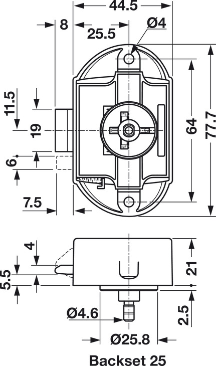 Push-Lock featuring push-button locking mechanism, used as a deadbolt lock for doors or drawers