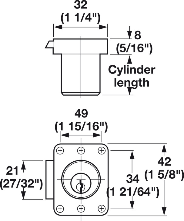 Hafele 232.06.400 Spring Bolt Lock, C8139, Keyed Different, National Lock - High Security, Brass-Plated, Brushed Chrome