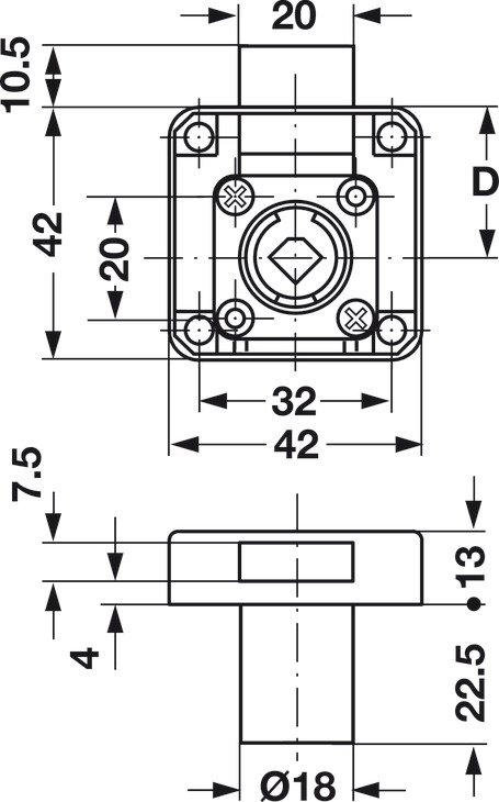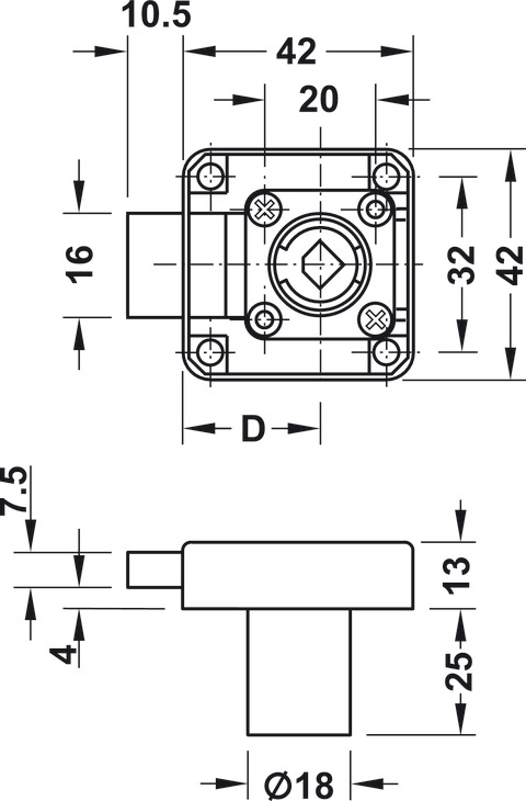 Version: Locking of latchbolt in unlocked position possible, so that the cylinder core can be installed and removed with the removal key