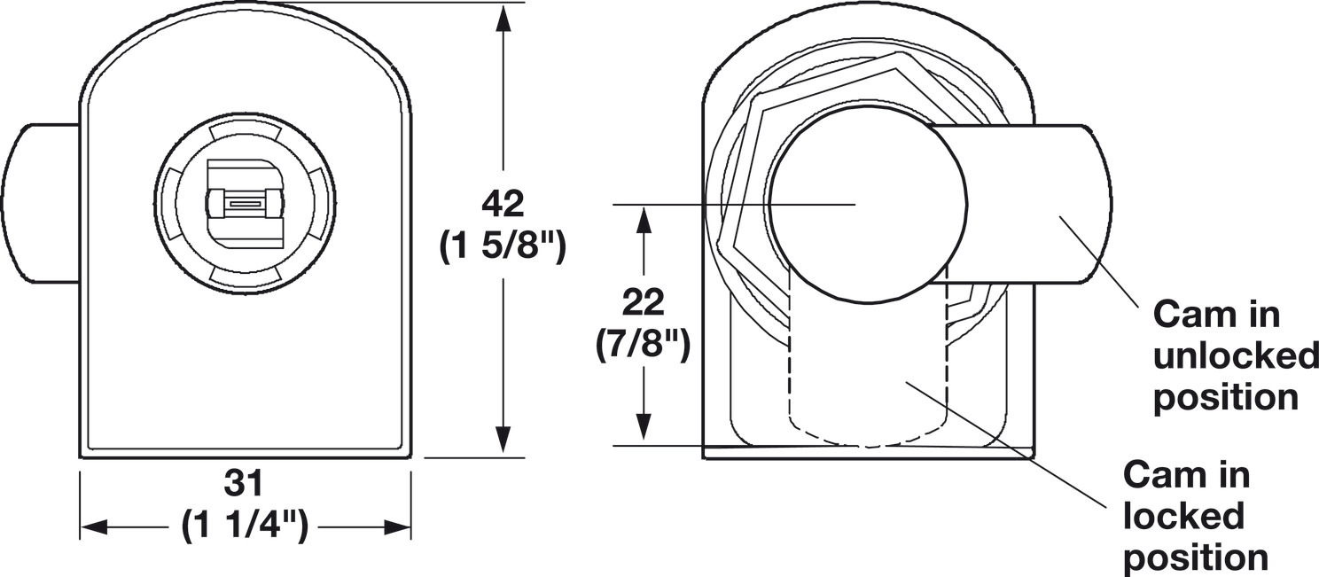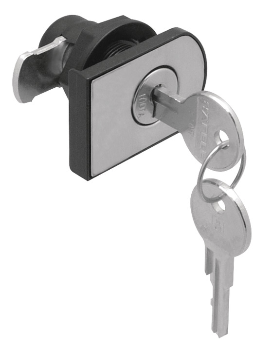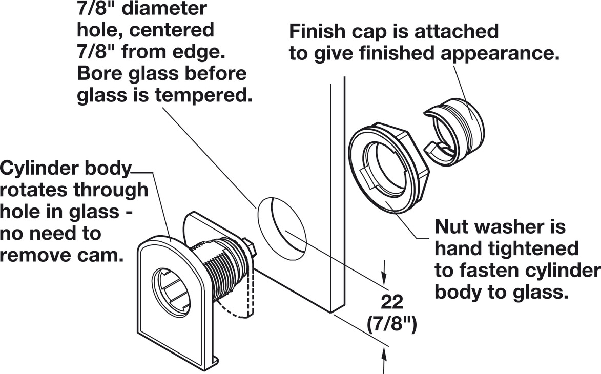 Hafele 233.17.700 Glass Door Lock, Vertical Installation, Timberline - Modular Removable Core Locking System, Nylon/Brass-Plated/Plastic/Steel, Polished Nickel