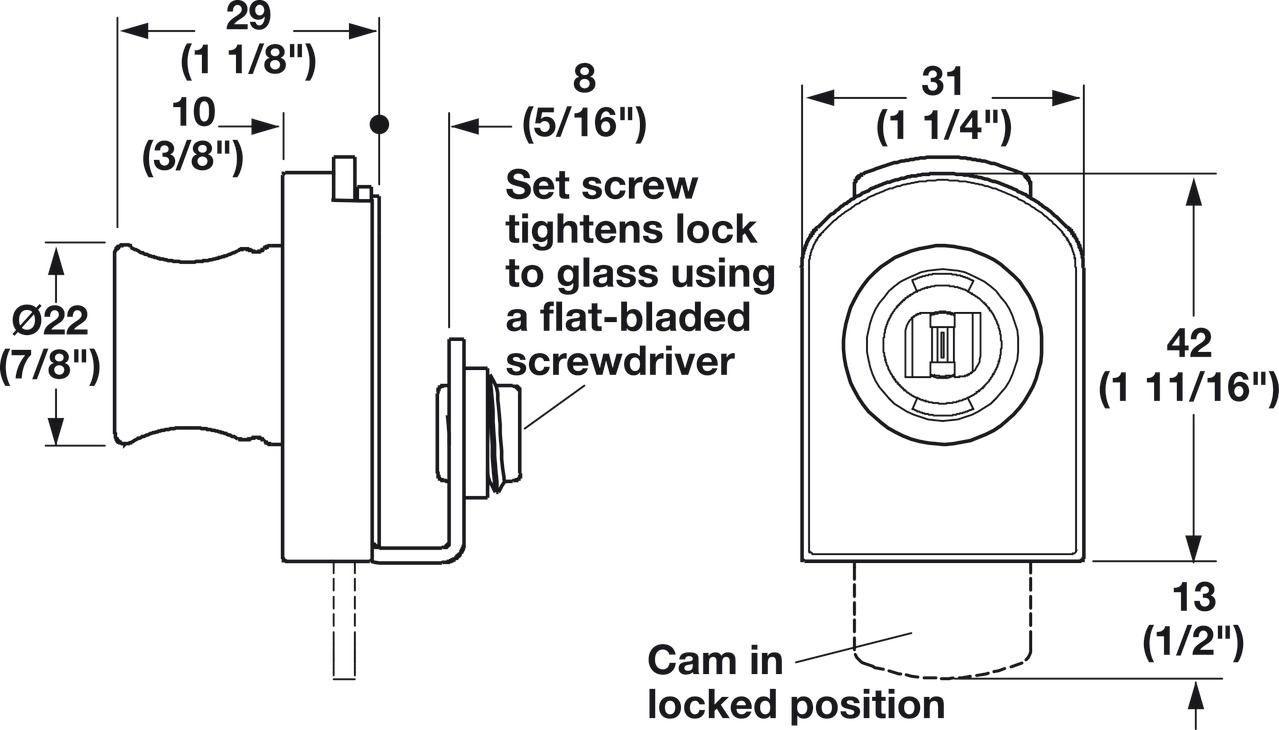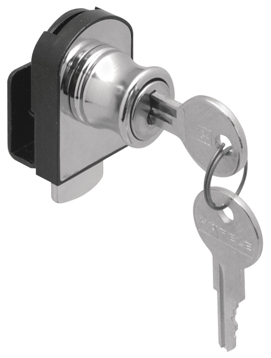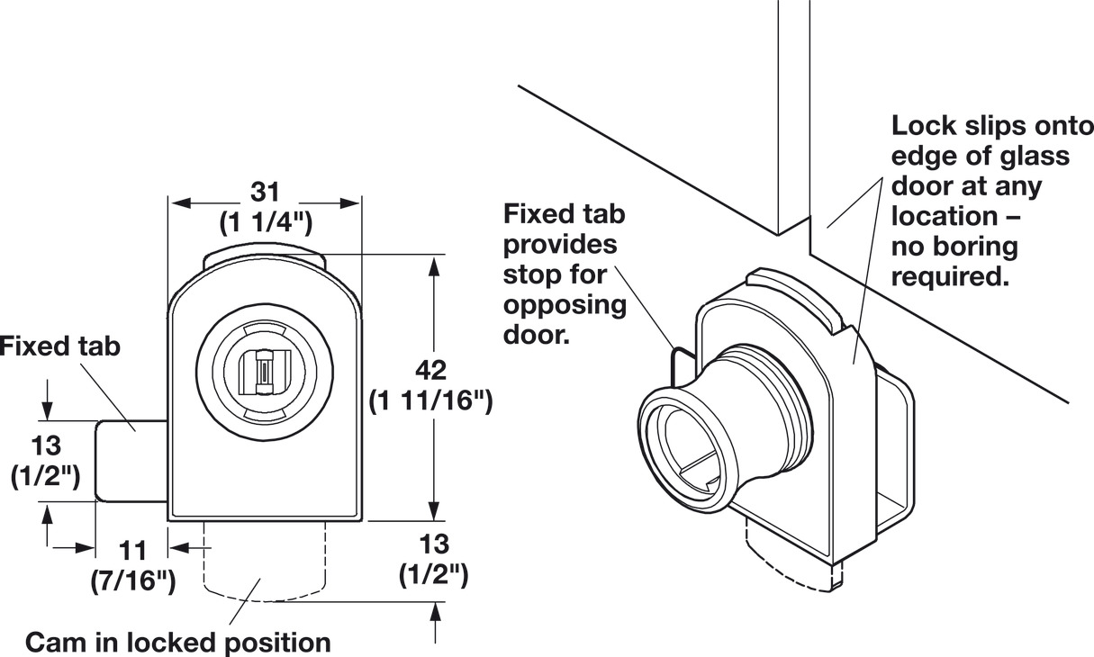 Hafele 233.18.830 Glass Door Lock, Non-Bore, Vertical Installation, Timberline - Modular Removable Core Locking System, Nylon/Brass-Plated/Steel, Polished Brass
