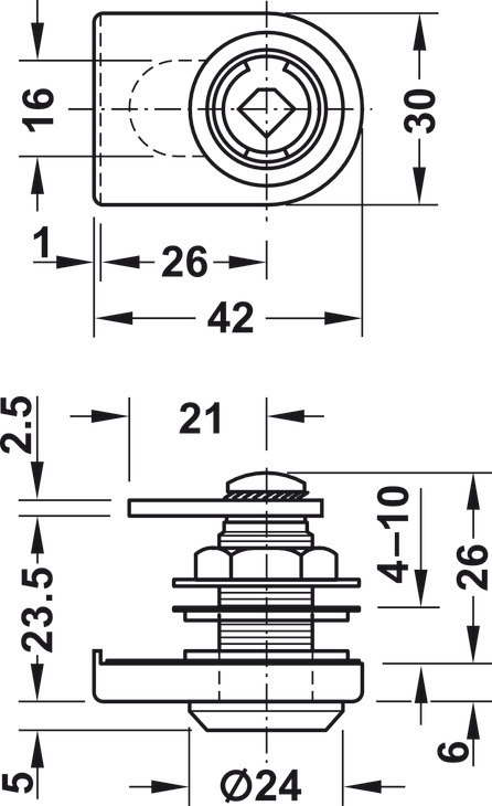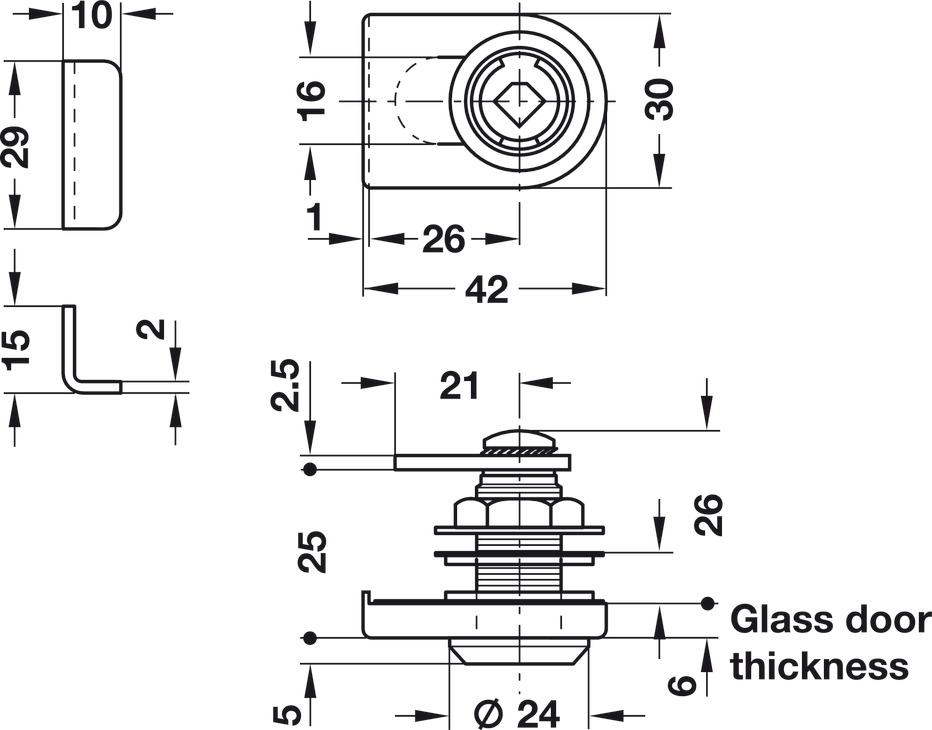 Hafele 233.42.710 Glass Door Cam Lock, Symo 3000, B (C, E, H) Closing Direction, Right Mounting, without Key, Zinc, Matt Nickel Plated, 1 Set