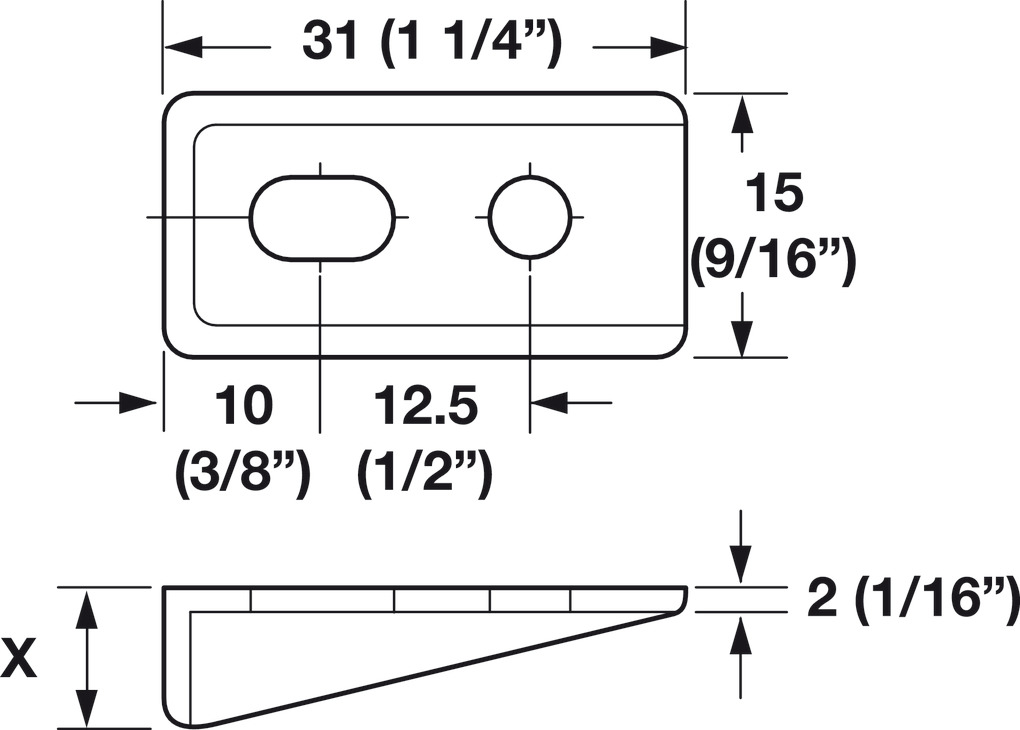 Hafele 234.91.094 Drawer Locking Wedge, for Central Locking System, 7/8" Thick Slides, 13/16" Dimension X, Plastic, Black